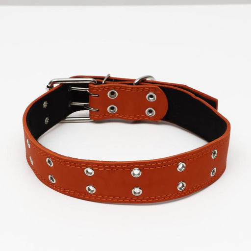 Ошейник кожаный на синтепоне, безразмерный, 83 х 4.5 см, ОШ 20-71 см, оранжевый