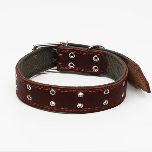 Ошейник комбинированный кожа/брезент, безразмерный, 83 х 4,5 см, ОШ 20-70 см, коричневый