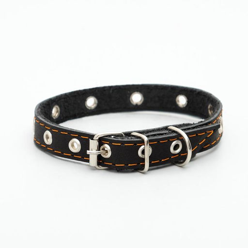 Ошейник кожаный однослойный с рифлеными люверсами, безразмерный, 40 х 1,5 см, ОШ 27-35 см, чёрный 7