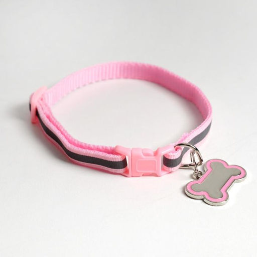 Ошейник светоотражающий с адресником, 30 х 1 см, капрон, цвет розовый