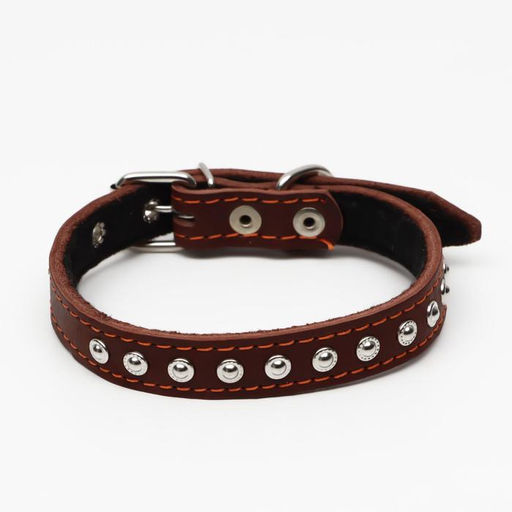 Ошейник кожаный на синтепоне украшенный, 45 х 2 см, ОШ 25-35 см, коричневый