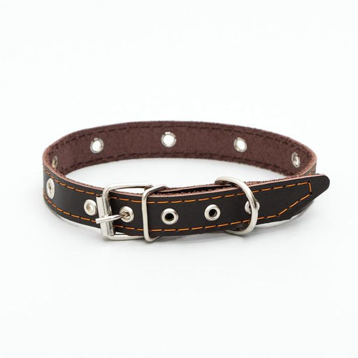 Ошейник кожаный однослойный с рифлёными люверсами, безразмерный, 50 х 2 см, коричневый