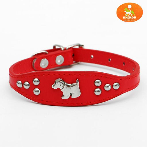 Ошейник-селедка со щенком, 29-32 х 2,5 см, искусственная кожа, красный