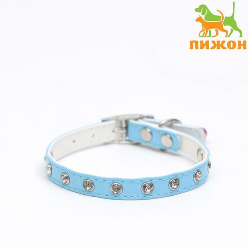 Ошейник с круглыми стразами,28 х 1 см, ОШ 21-25 см, искусств. кожа, голубой