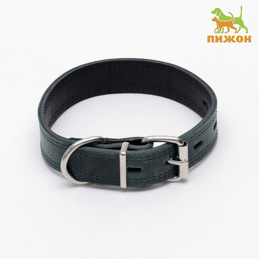 Ошейник кожанный двухслойный 3 см, ОШ 35-47 см, изумрудный