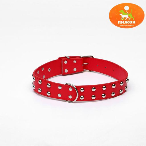 Ошейник клёпаный в 2 ряда, 65 х 3,4 см, ОШ 50-60 см, красный