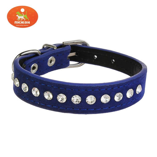 Ошейник "Бархат и стразы", 31 х 1,3/2 см, ОШ 22-28 см, синий