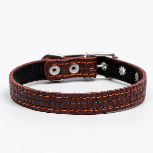 Ошейник кожаный с тиснением на синтепоне, 46 х 2 см, ОШ 25-35 см, коричневый