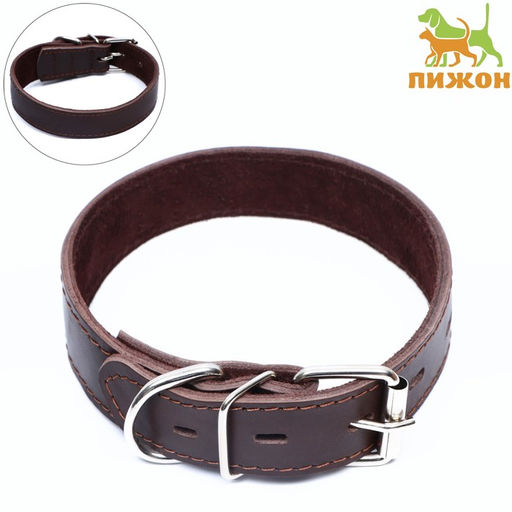 Ошейник кожаный двухслойный на замше, 2,5 см, ОШ 29-39, коричневый