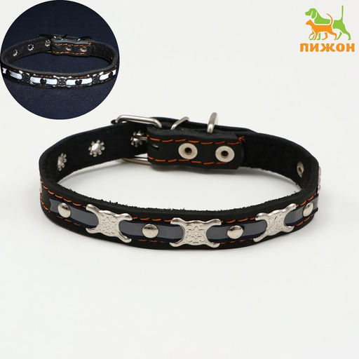 Ошейник кожаный светоотражающий на синтепоне бабочка, 45 х 2 см, ОШ 25-35 см, чёрный