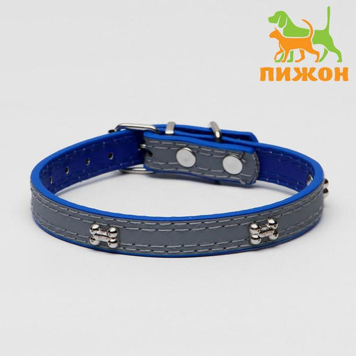 Ошейник с косточками светоотражающий, 37 х 1,3 см, ОШ 26-33, синий