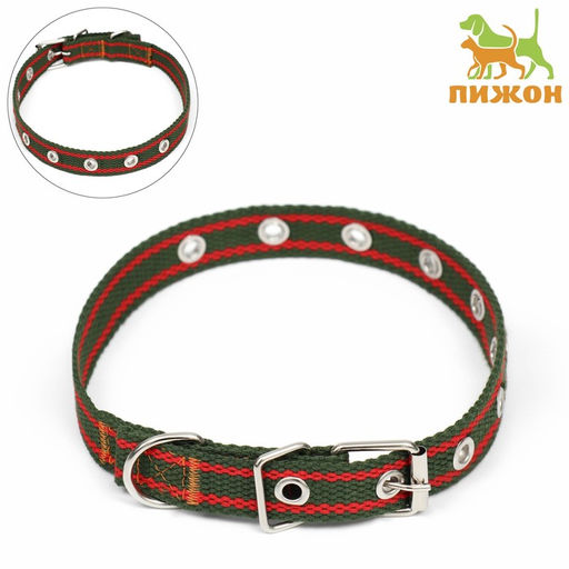 Ошейник брезентовый безразмерный однослойный, 52 х 2 см, хаки/красный
