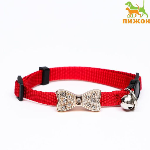 Ошейник кошачий "Бантик" со стразами, 30 х 1 см, красный