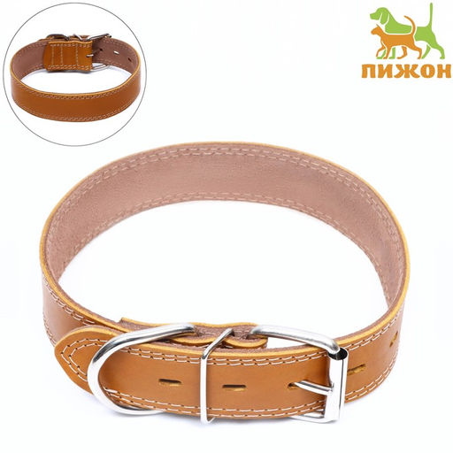 Ошейник кожаный двухслойный на замше, 3,5 см, ОШ 41-51 см, бежевый