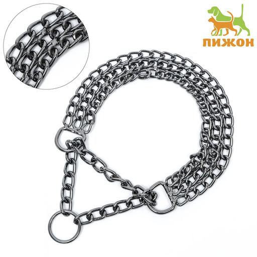 Ошейник - полуудавка металлический трехрядный, 50 см, толщина проволоки 2,5 мм, черный
