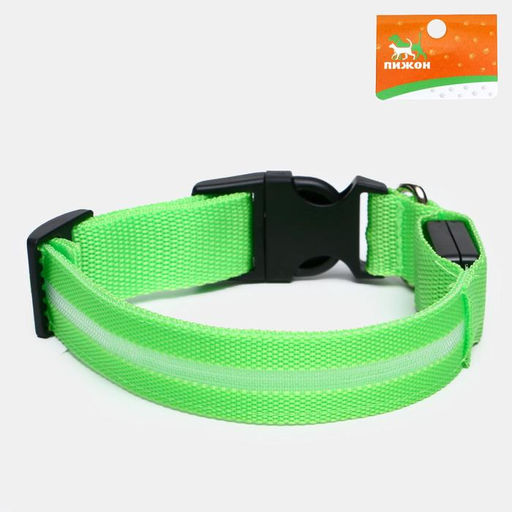 Ошейник с подсветкой размер S, ОШ 35-43 х 2,5 см, 3 режима свечения зелёный