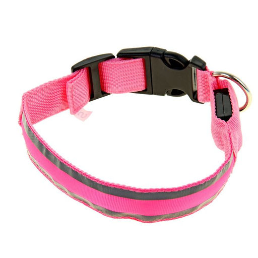 Ошейник с подсветкой Двойная полоса размер S, ОШ 35-43 х 2,5 см 3 режима свечения розовый