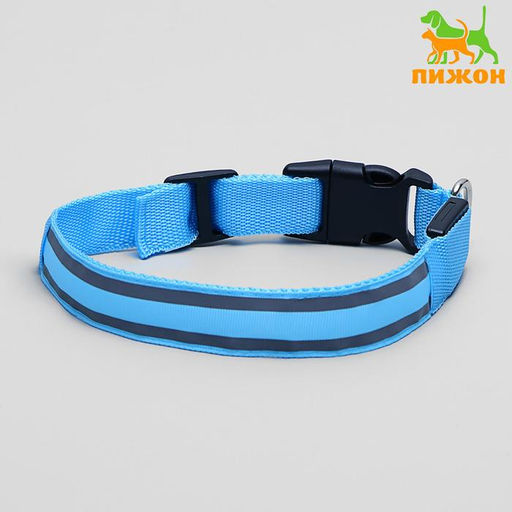 Ошейник с подсветкой Двойная полоса размер L, ОШ 45-52 х 2,5 см 3 режима свечения голубой