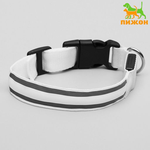 Ошейник с подсветкой Двойная полоса размер L, ОШ 45-52 х 2,5 см, 3 режима свечения белый