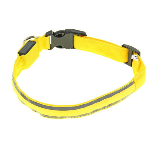 Ошейник с подсветкой Двойная полоса размер XL, ОШ 52-60 х 2,5 см 3 режима свечения жёлтый