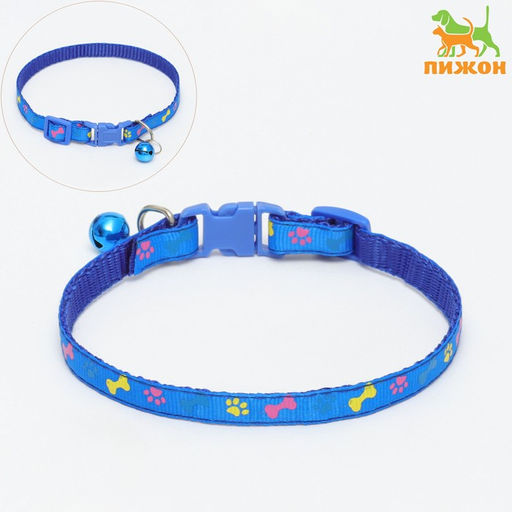 Ошейник двухслойный с фастексом "Разноцветные косточки" 30 х 1 см, синий