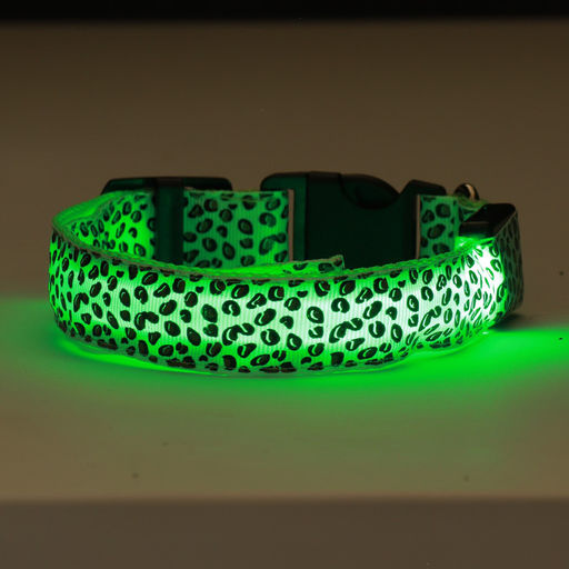 Ошейник с подсветкой Леопард 3 режима свечения размер XL, ОШ 60-70 х 2,5 см зелёный