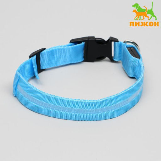 Ошейник с подсветкой размер L, ОШ 45-52 х 2,5 см 3 режима свечения голубой