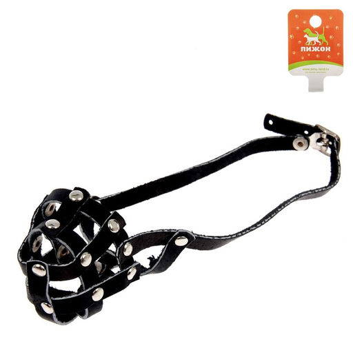 Намордник кожаный сетчатый №0, такса (длина по носу 4,5 см, обхват морды 14 см), чёрный