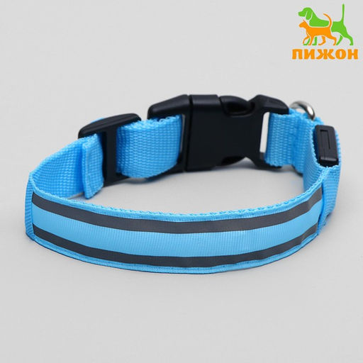 Ошейник с подсветкой Двойная полоса размер S, ОШ 35-43 х 2,5 см, 3 режима свечения голубой