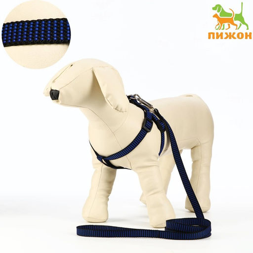 Комплект амуниции рельефный, поводок 120 х 1,5 см, ОГ 36-49 см, сине-чёрный