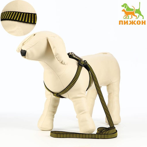 Комплект амуниции рельефный, поводок 120 х 1,5 см, ОГ 36-49 см, жёлто-чёрный