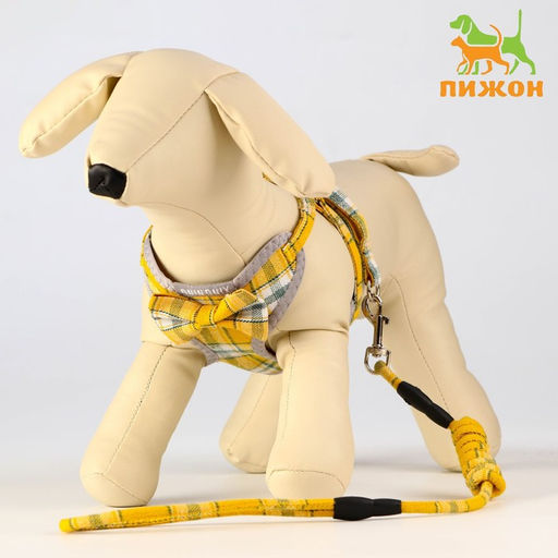 Комплект амуниции с мягкой шлейкой, 120 х 1 см, ОШ 28-54 см, ОГ 36-60 см, серо-жёлтая клетка