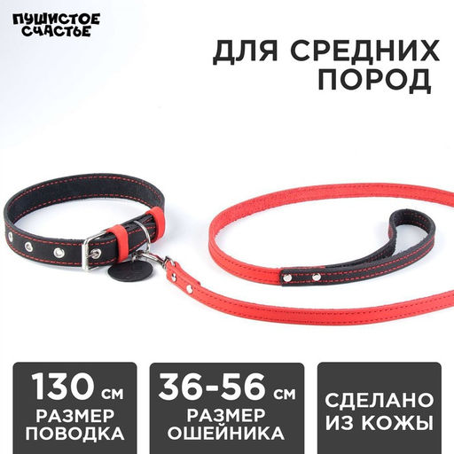 Комплект : ошейник (36-56х2.5 см) и поводок (130х1.5 см), цвет чёрный и малиновый