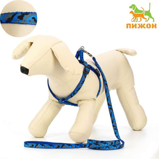 Комплект прошитый "Милитари", поводок 120 х 1 см, ОГ 23-35 см, голубой