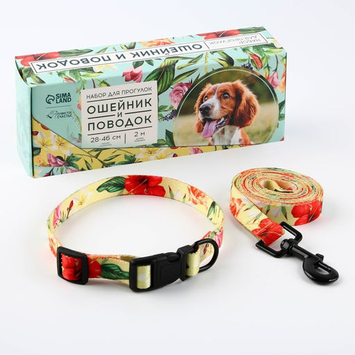 Набор Цветы, застёжка - фастекс, поводок 2 м и ошейник 28-46 см