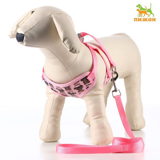 Комплект с мягкой шлейкой "Дэймон", размер М, поводок 120 х 1,2 см, розовый