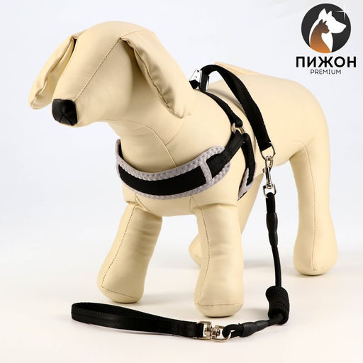 Комплект мягкая шлейка, круглый поводок 120 х 1 см с вертлюгом, S, ОШ 26-67 см, ОГ 26-67 см, чёрный