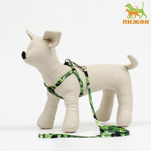 Комплект "Камуфляж", капрон, поводок 120 х 1 см, ОШ 16,5-27 см, ОГ 21-35 см, зелёный
