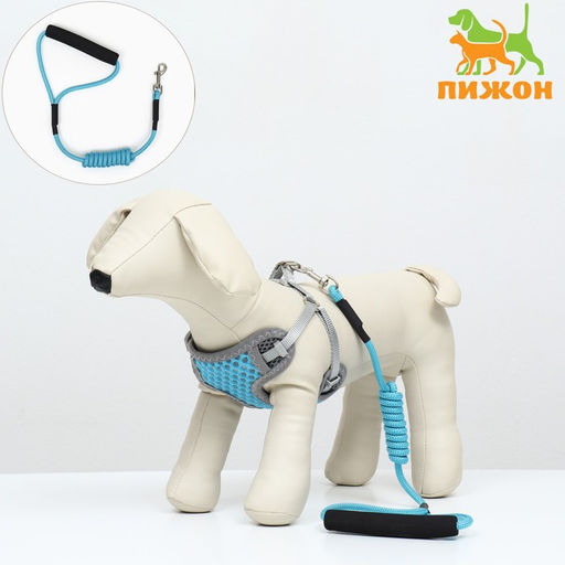 Комплект амуниции с мягкой дышащей шлейкой и круглым поводком 120 х 1 см, голубой
