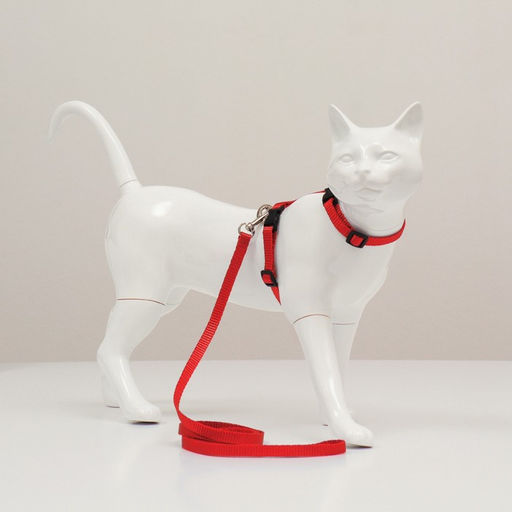 Комплект для кошек, ширина 1 см, ОШ 16,5-27 см, ОГ 21-35 см, поводок 120 см, красный