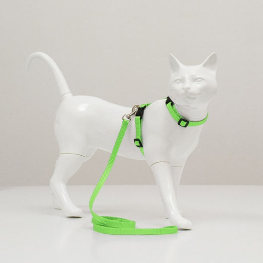 Комплект для кошек, ширина 1 см, ОШ 16,5-27 см, ОГ 21-35 см, поводок 120 см, зелёный