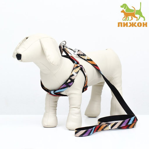 Комплект амуниции двухслойный, размер L, поводок 120 х 2 см, ОШ 31-45 см , ОГ 35-52 см, разноцветный