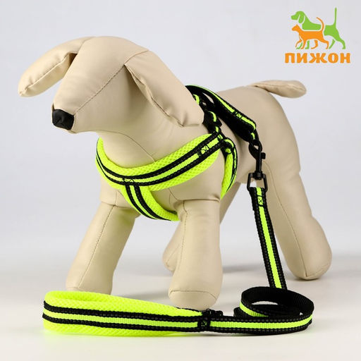 Комплект амуниции светоотражающий с мягкими шлейкой и ручкой, поводок 120 х 1,5 см, ОШ 35-53 см, жёл