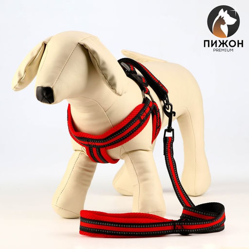 Комплект амуниции светоотражающий с мягкими шлейкой и ручкой, поводок 120 х 2 см, ОШ 25-72 см, красн