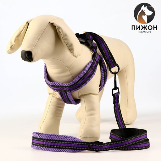 Комплект амуниции светоотражающий с мягкими шлейкой и ручкой, поводок 120 х 2 см, ОШ 25-72 см, фиол