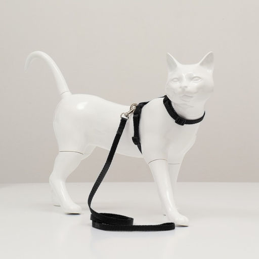 Комплект для кошек, ширина 1 см, ОШ 16,5-27 см, ОГ 21-35 см, поводок 120 см, чёрный