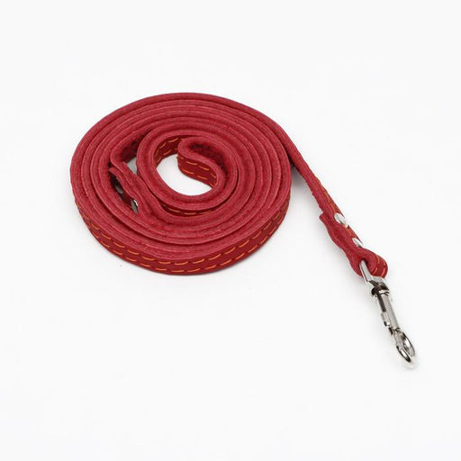 Поводок кожаный однослойный, простроченный, 1.37 м х 1 см, красный