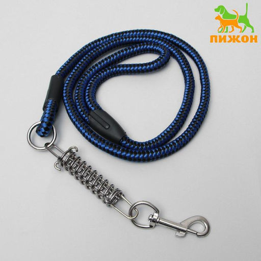 Поводок усиленный с амортизатором от рывка, 120 х 1,2 см, чёрно-синий