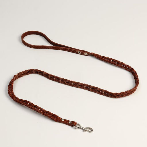 Поводок кожаный плетеный "Коса", 1.25 м х 1.1 см, коричневый