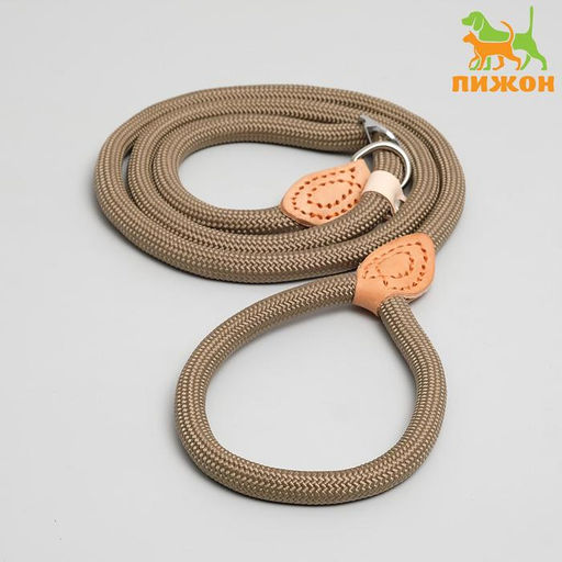 Поводок-удавка 150 х 1 см, полиэстер и натуральная кожа, бежевый